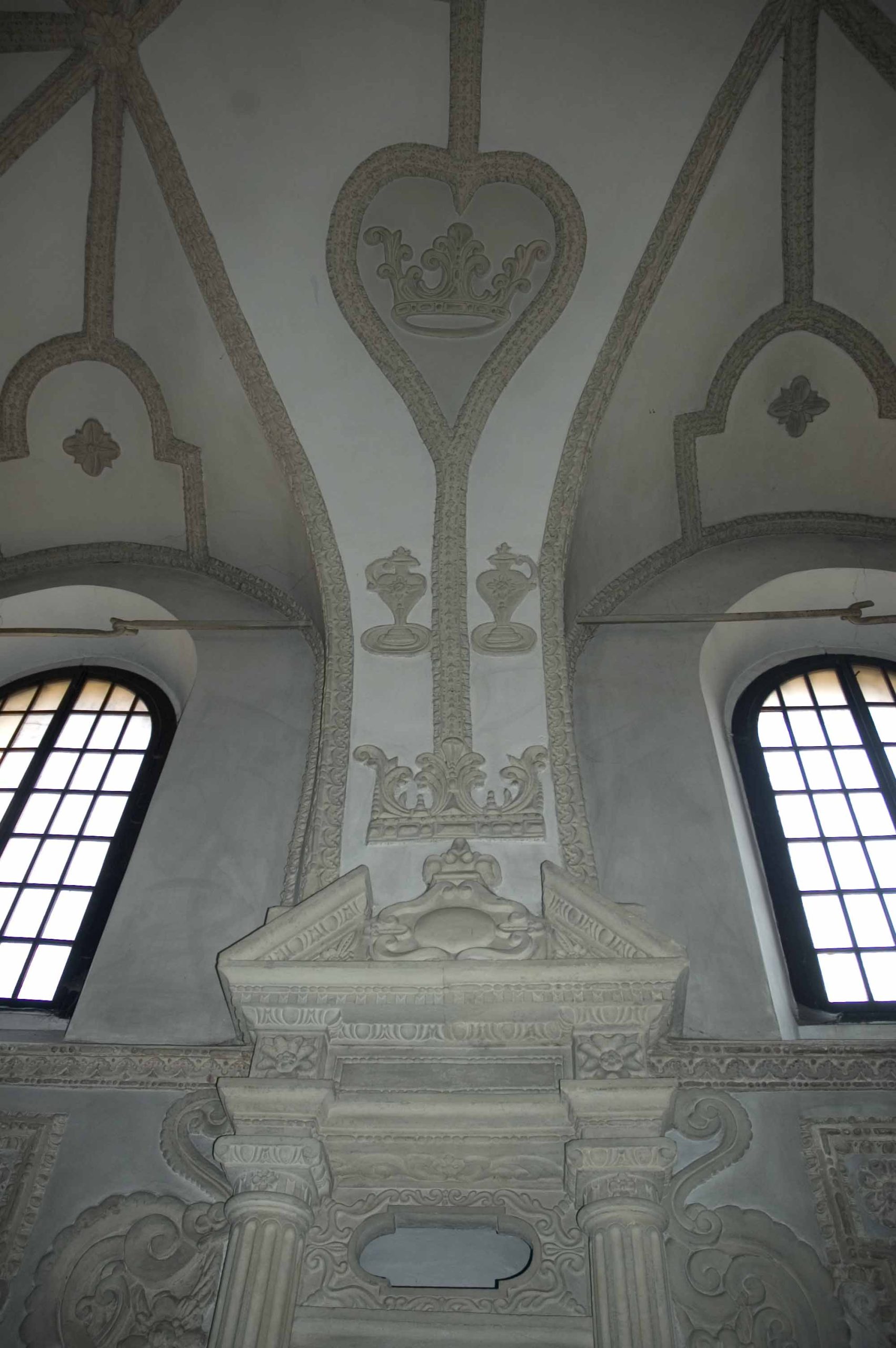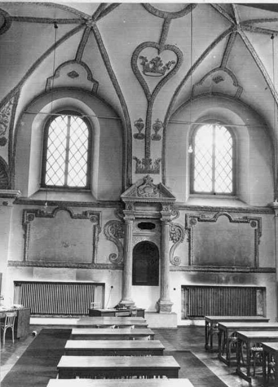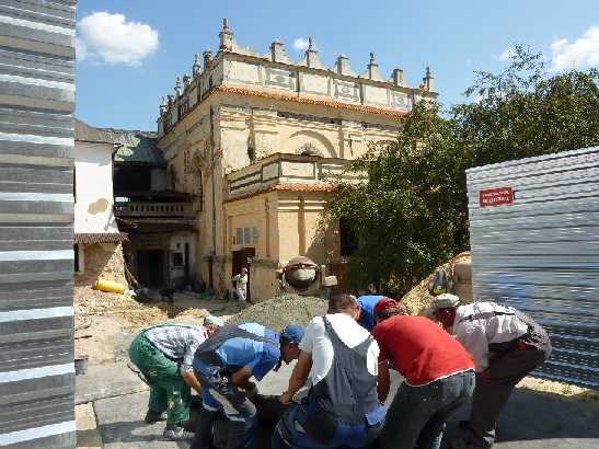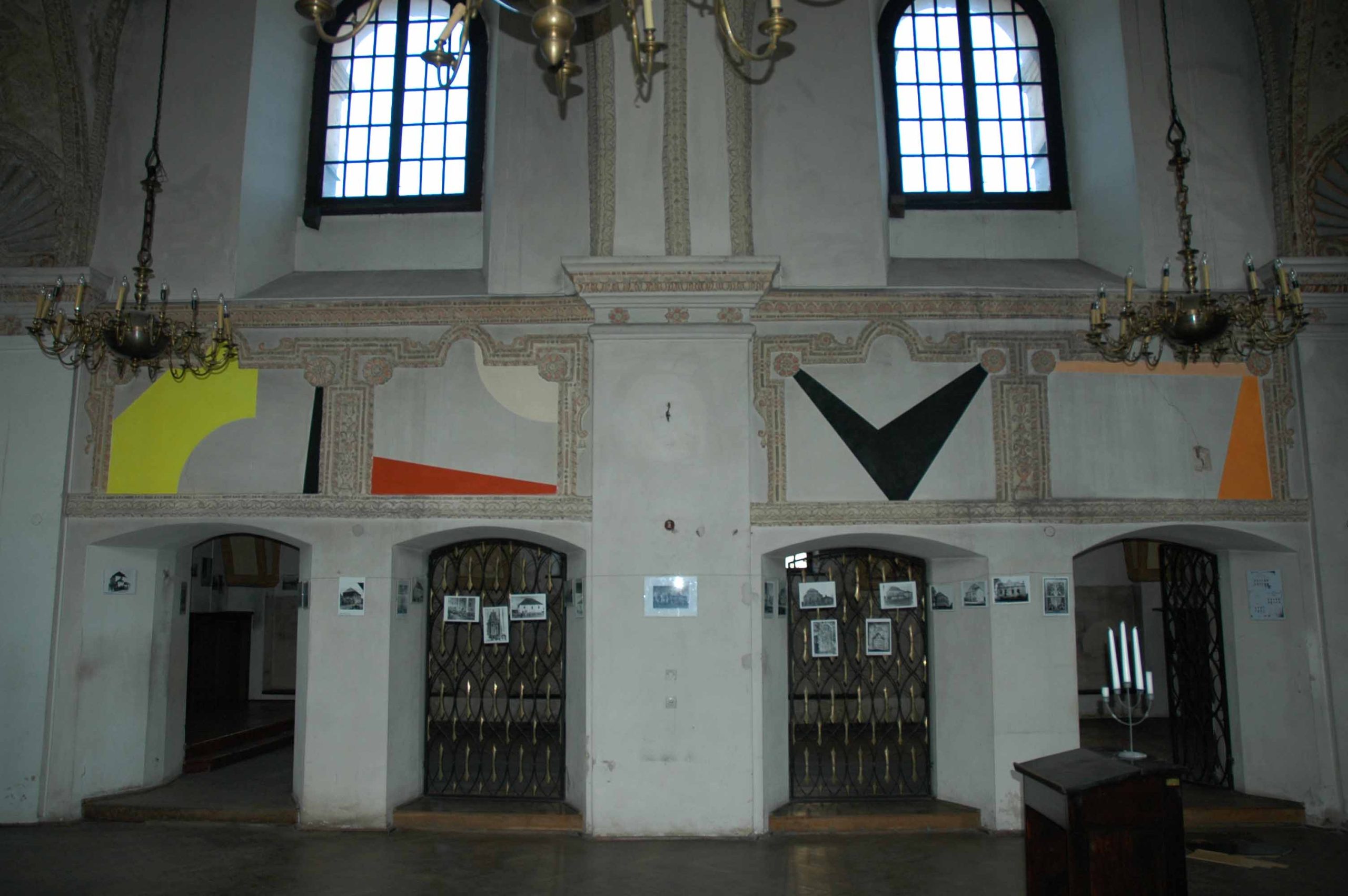 בית הכנסת, יצירה ארכיטקטונית בולטת, נבנה ב-1588 במסגרת הפריווילגיה שמסר יאן זמויסקי לקהילה הספרדית שנוצרה אז. הוא נבנה כבית מבצר בסגנון הרנסאנס, והיה מרכז הקהילה במשך דורות. המבנה הראשון היה כנראה בנוי עץ, והבניין הנוכחי נבנה בשנים 1610-20. הבימה נבנתה ב-1788.