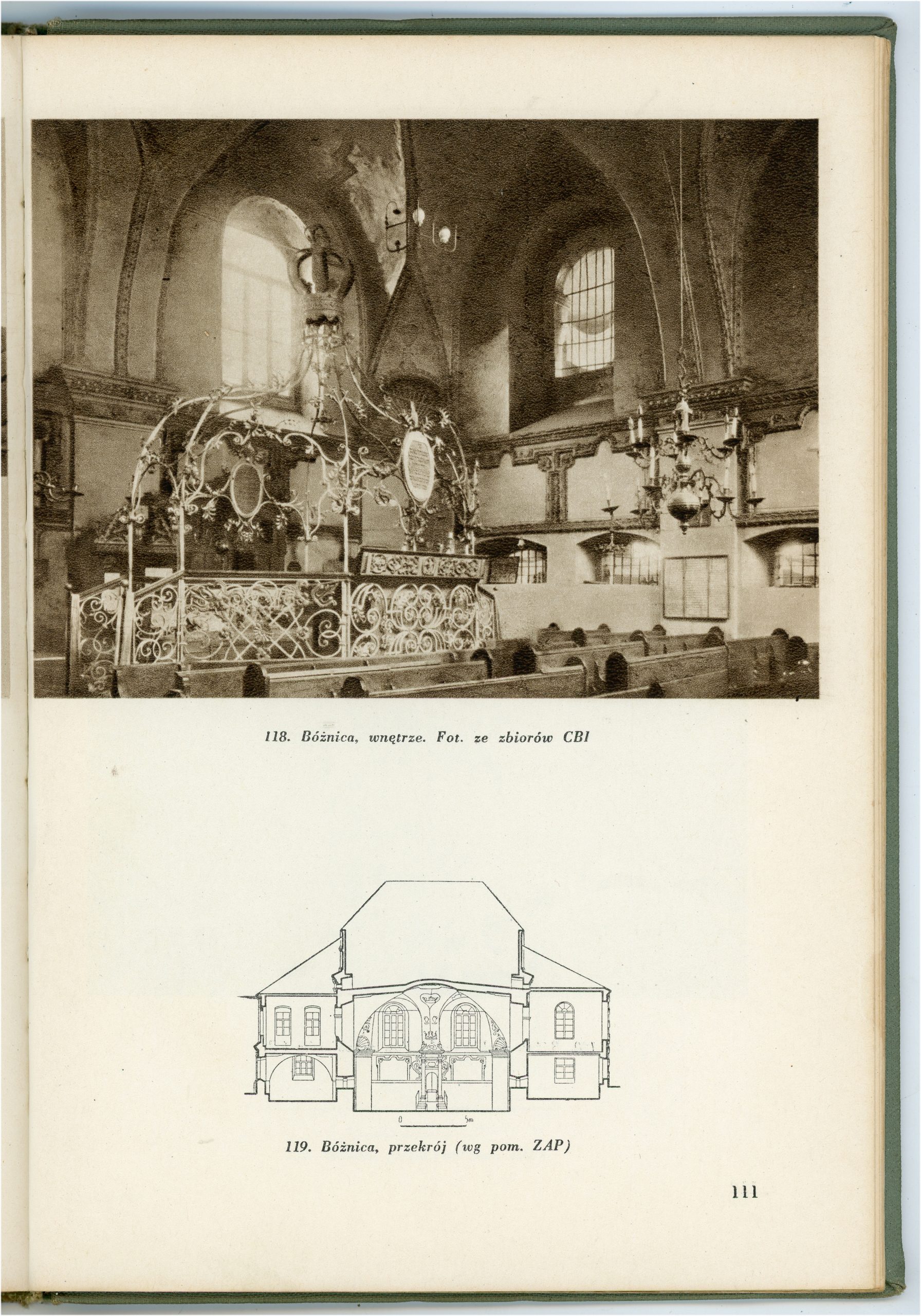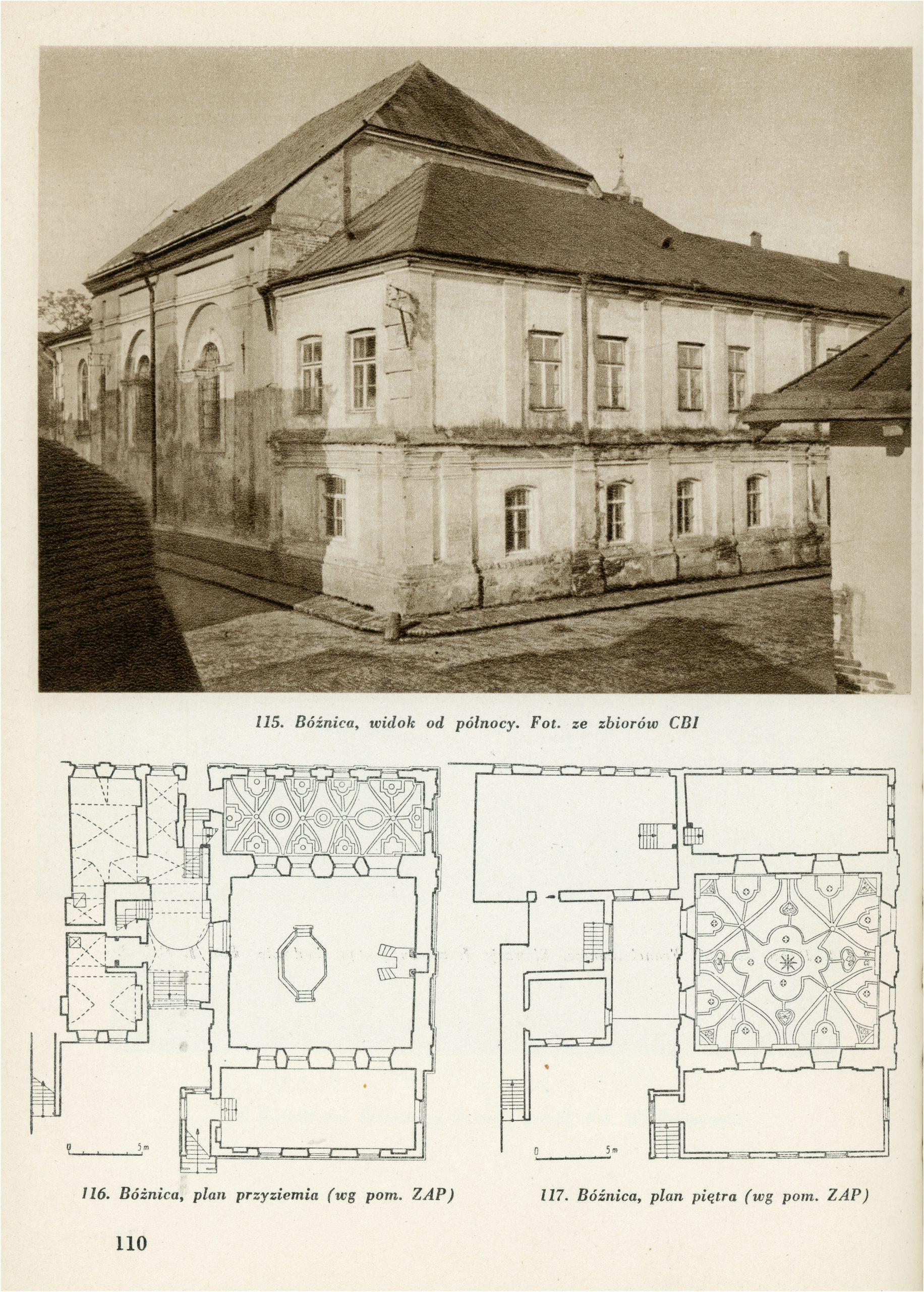 על אודות בית הכנסת יש בידינו מאסה משנת 1957 מאת הארכיטקט והיסטוריון הארכיטקטורה היהודית של מרכז-מזרח אירופה דוד דוידוביץ (1905-1993), שכתב בין השאר את הספרים "אמנות ואמנים בבתי כנסת של פולין: מקורות סגנונות השפעות", "הכתובה בעיטורים", "בתי הכנסת של היהודים האשכנזים". המאסה מבוססת על מחקר של ההיסטוריון-הארכיטקט הפולני אדולף שִׁישְׁקוֹ-בּוֹהוּשׁ (Adolf Szyszko-Bohusz, 1883-1948), ומצורפת כאן.